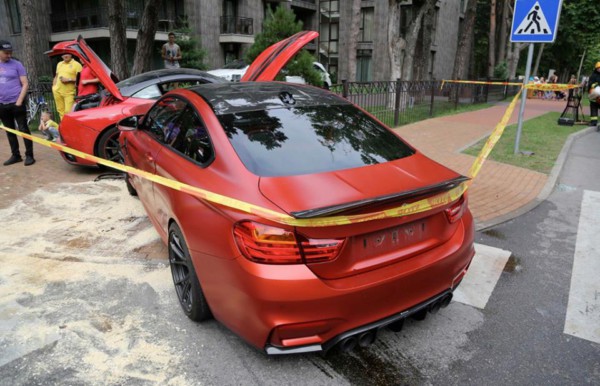 Подробности инцидента неизвестно, но на фото видно, что баварский автомобиль перпендикулярно врезался в итальянский суперкар, которые получил серьезные повреждения.