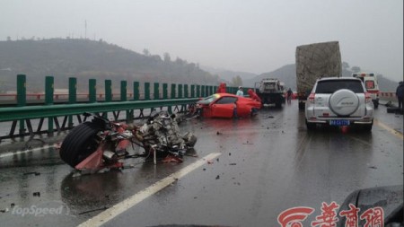 Помимо Ferrari на дорогах страны, стали появляться и разбитые автомобили на обочине. Последнее происшествие случилось на скоростном шоссе Баомао, и уже заслужило славу одного из самых шокирующих ДТП с участием элитных автомобилей за последнее время. И дело не в количестве автомобилей или оценённом ущербе, а в масштабах разрушения после столкновения лоб в лоб двух автомобилей – Ferrari California и 458 Italia.