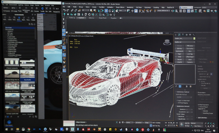 Работает Касим сразу в нескольких программах: 3D Max необходим для создания моделей, KeyShot — для визуализации, создания итогового вида проекта, Photoshop/Lightroom — для постобработки изображений.